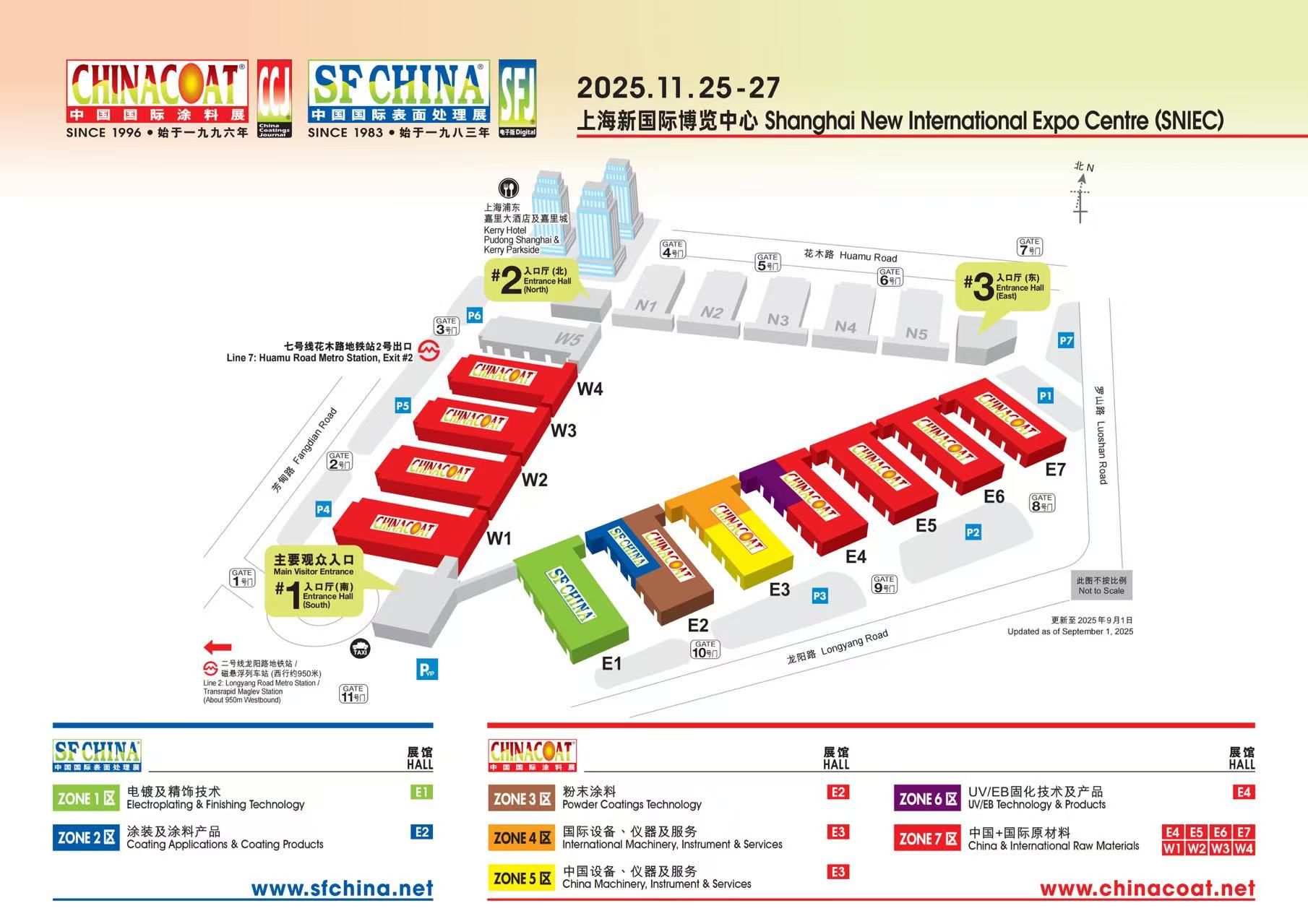 第三十届中国涂料、油墨及粘合剂展览会 CHINACOAT 将于2025年11月25~27日在上海新国际博览中心展馆:E2 / E3 / E4 / E5 / E6 / E7 / W1 / W2 / W3 / W4(3/4/5/6/7 展区)这10个展馆展出。